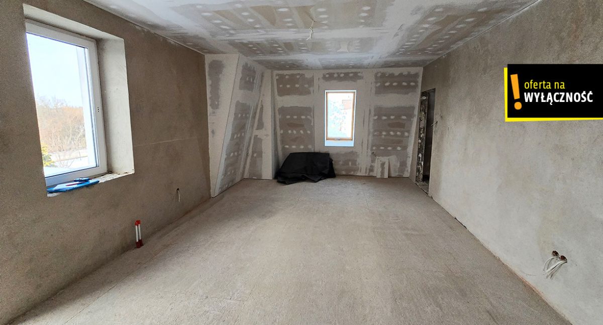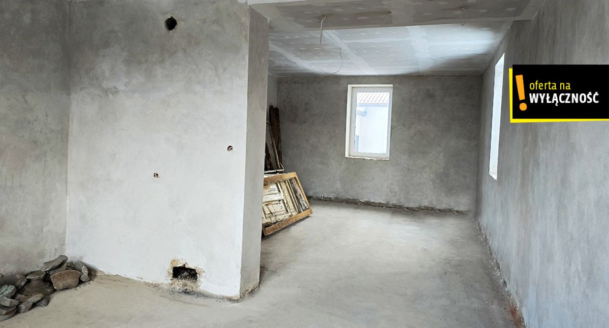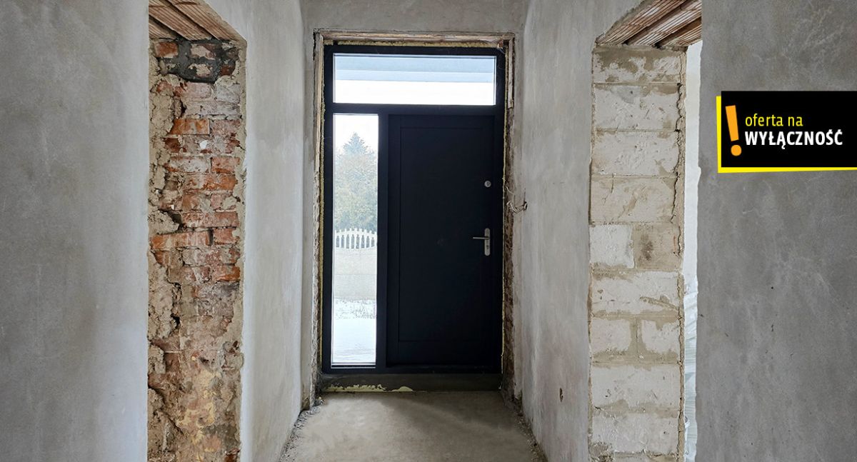 Idealna propozycja dla osób, które chcą wykończyć wnętrza według własnego gustu. Działka ogrodzona przęsłami betonowymi, wjazd bezpośrednio z drogi asfaltowej.